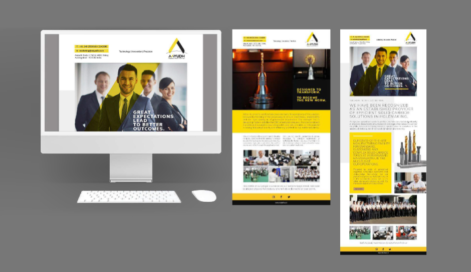 Aayudh’s thirty‑year legacy risked blending in. We unearthed a new promise—“Expect more from us”—and expressed it across identity, website, collateral and social. The refresh deepened trust and lifted LinkedIn engagement ten‑fold among precision buyers within the first quarter.